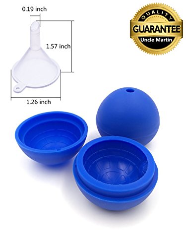 (1) MULTI-PURPOSE ELEGANT DESIGN: UNCLE MARTIN silicone ice mold is not only for making ice, cupcakes and chocolates can also be made with this one silicone mold. The external size is about 2.9 inches and the internal diameter is about 2.4 inches. Package Quantity:2 x Silicone Ice Molds (BLUE) + 2 x Filling Funnels.