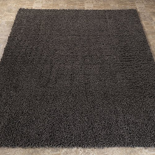 Cozy shag collection grey solid shag rug 3'3" L x 4'7" W contemporary living and bedroom soft shaggy area rug.
