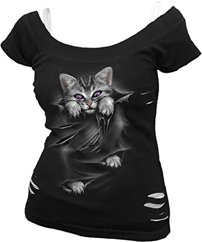 -. Feature : A cute kitten with purple eyes peeks out of the slashed top. / 2in1 White Ripped Top Plus Size Black is made of Top Quality 100% Cotton, Knitted using skin friendly, Azo-free, Reactive dyes. / Spiral is a long-established brand specialising in heavy metal and gothic fashion, with men's and women's gothic clothing. / Spiral artwork covers a range of themes from tribal designs, gothic, horror, fantasy and fetish to the more commercial vintage, fashion and distressed, screen P.R.Inted to last. / Just one of the unique 'Fashion-T-Shirts' from a huge range of Alternative Fashion products from Spiral Direct!