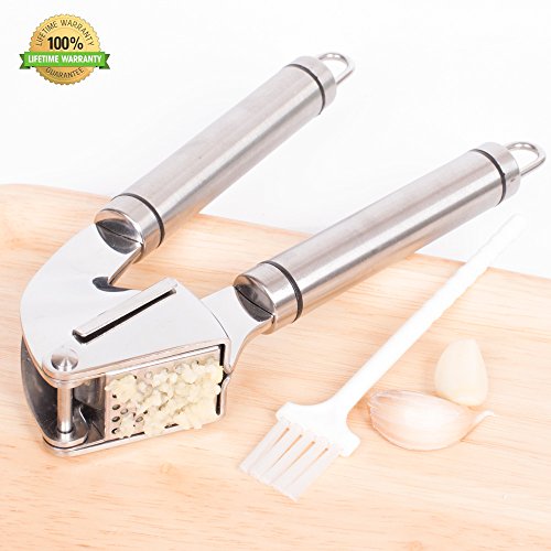 Garlic Press Stainless Steel, Kitchen Garlic Mincer Crusher Chopper Tool, Easily Squeeze and Clean, Dishwasher Safe, Comes with Cleaning Brush, One of the Best Kitchen Gadgets Gifts.