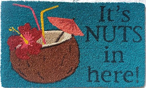 -. Feature : Funny welcome mat; Durable for outdoor use; / Cute seasonal decor; Great for home or cottage; / Lettering/tropical drink; / Water resistant;Stain resistant; / Material: 57% PVC, 43% coir.