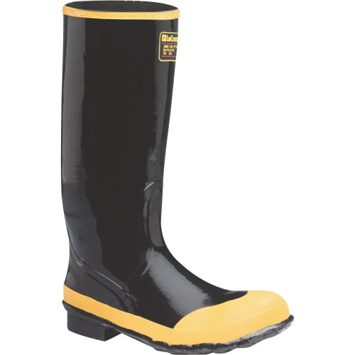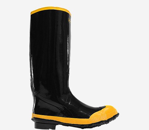 Amazon.com Product Description If you're looking for full protection from the elements, then this Economy boot from LaCrosse is the shoe for you. The knee-high boot has a slip-resistant, tractioned sole for keeping every step steady, and a steel toe and shank offer security and firm arch support.