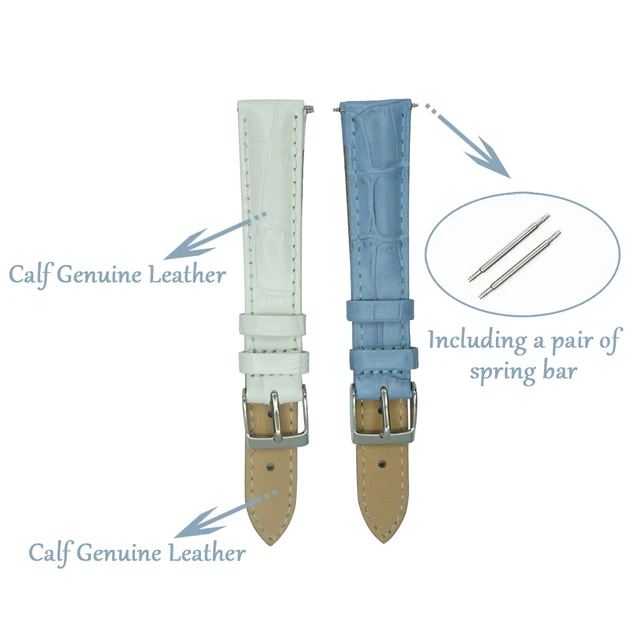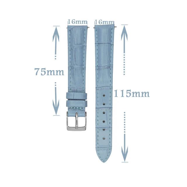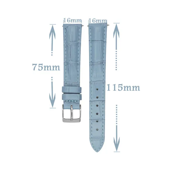16 미리메터 가죽 시계 밴드 라이트 블루 손목 화이트 정품 가죽 스트랩 시간 Stianless 스틸 버클 여성 시계