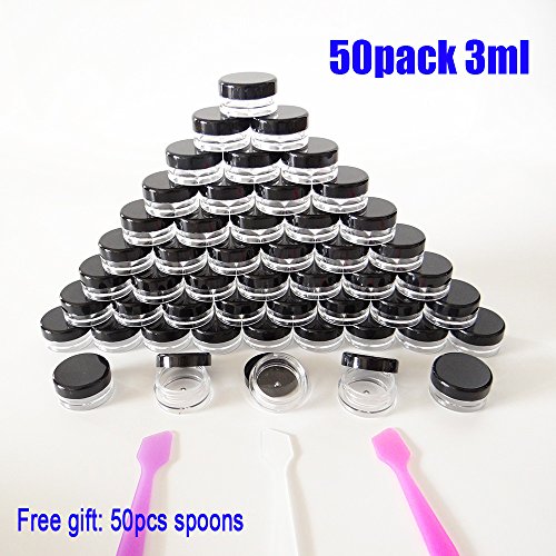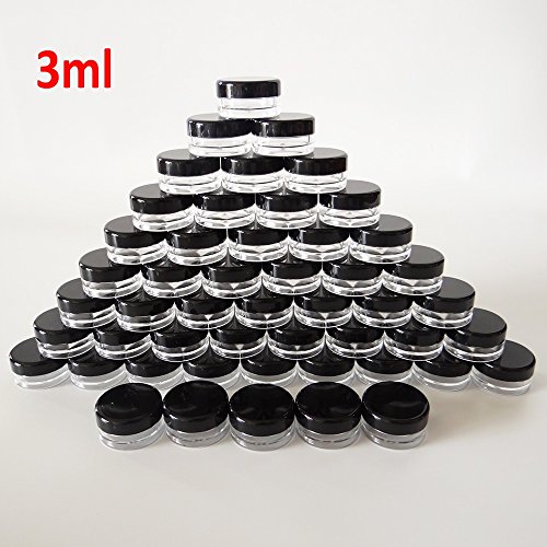 - Quantity - 50pcs 3g/3ml clear empty container pot jar. Diameter is about 1.1 inch and the height is about 0.5 inch.