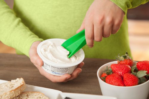 - First, use the spoon to scoop the perfect amount of peanut butter, sour cream, mayo, butter, or cream cheese