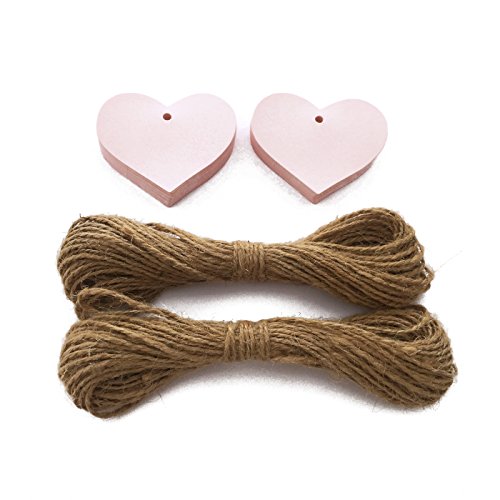 LWR Crafts 100 Hang Tags Heart with Jute Twines 100ft (2 3/8" x 2 3/16", Light Pink)