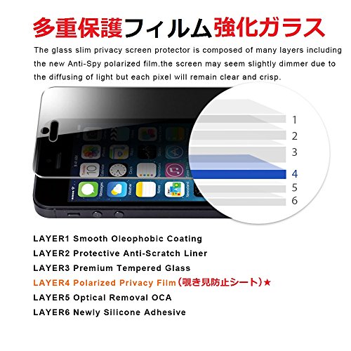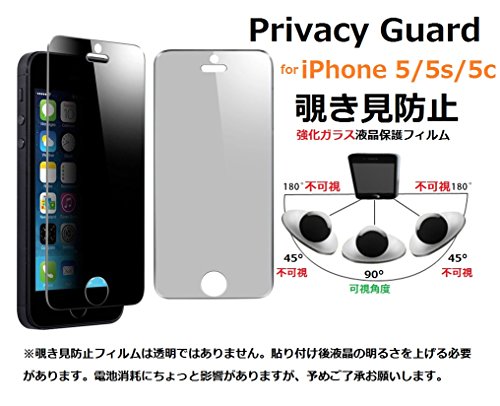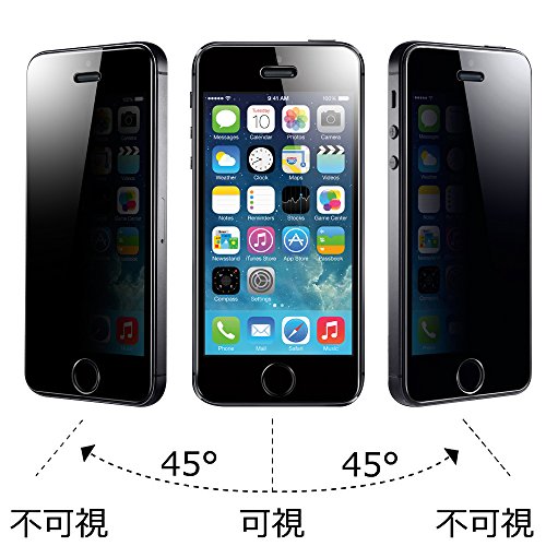 -. Feature : ただ一枚の液晶フィルムを貼り付けてから、左右45°から見ると、携帯の液晶画面が真っ黒になりました!プライバシー保護できる! / ナイフよりも硬い表面硬度9Hで傷がつきにくく、疎油性コーティングによりディスプレイを守ります。高度シリコンによる吸着性で気泡が簡単に消え完全密着します。 / 0.3㎜極薄、まるでガラスフィルム内容に快適操作とタッチ体験。 / 飛散防止加工、万が一割れたら、ガラスの破片が飛び出さない。 / 対応機種:iPhone SE/iPhone 5s/iPhone 5/iPhone 5c (4インチ)