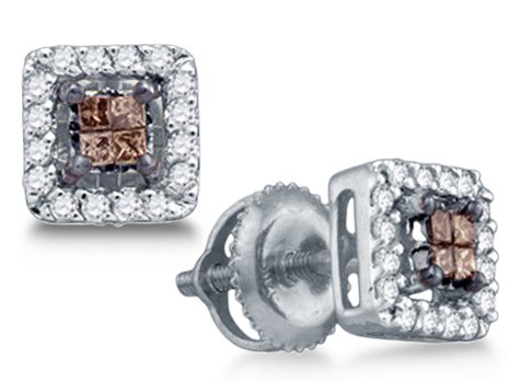 - Title : 0.30 cttw. Chocolate Brown & White Diamond Invisible Set Princess Cut Square Stud Earrings 10K Yellow Gold