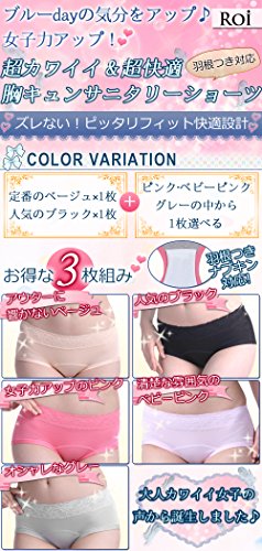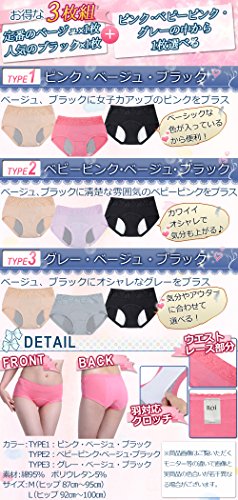【仕様】羽根つきナプキン対応 / 3枚組(ベージュ×1枚、ブラック×1枚 + ピンク、ベビーピンク、グレーの中から1枚選べます)