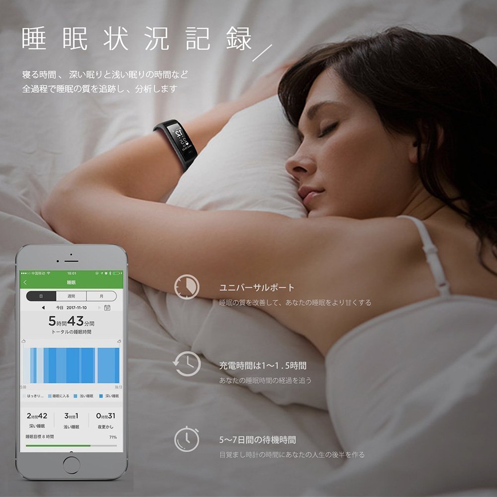 【Sleep Monitor】 We track and analyze the quality of sleep throughout the process, including sleeping time, deep sleep and shallow sleeping time.