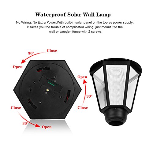 - No Wiring, No Extra Power: With built-in solar panel on the top as power supply, it saves you the trouble of complicated wiring, just mount it to the wall or wooden fence with 2 screws (included). It is suitable for outdoor fence wall lamp and garden fence lamp