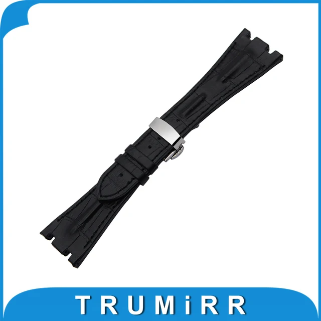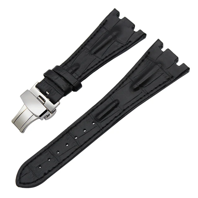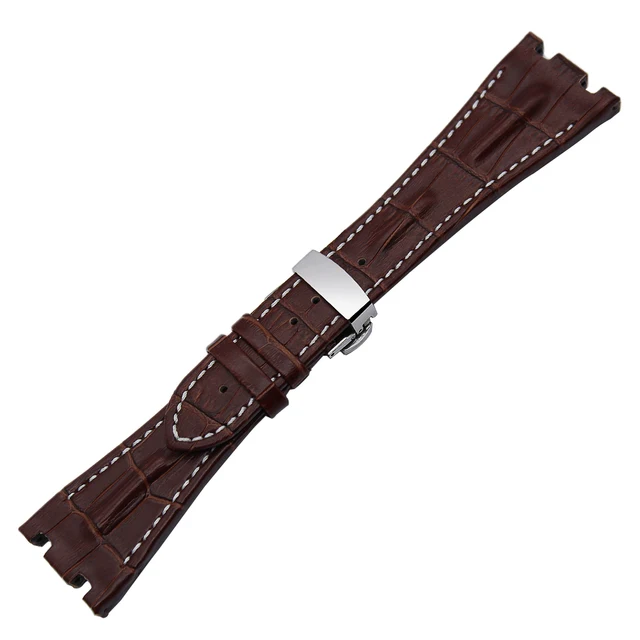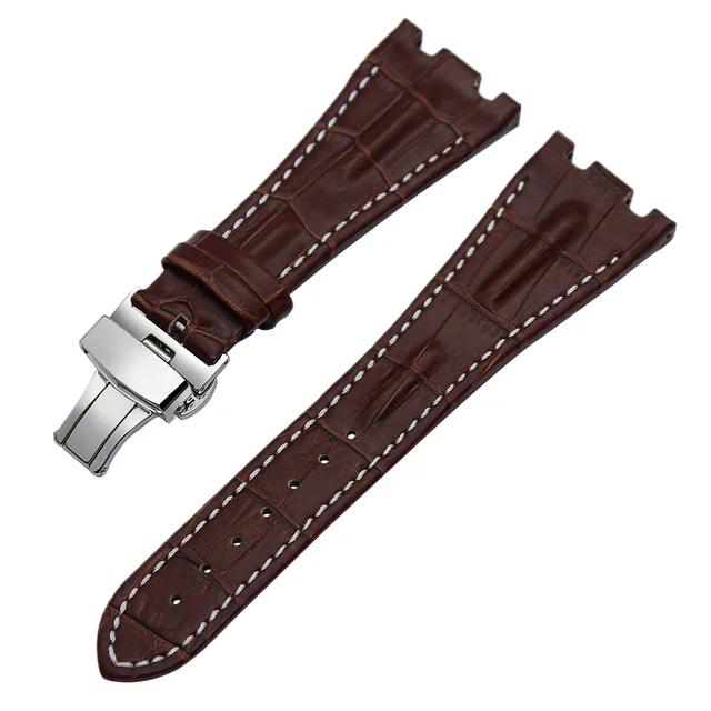 | [해외] 정품 가죽 시계 밴드 28 미리메터 AP 오데 마 피게 로얄 오크 악어 곡물 스트랩 나비 버클 손목 팔찌 블랙 브라운 |