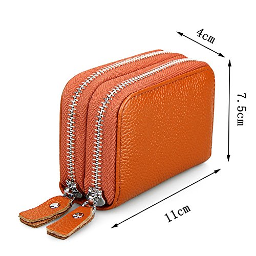 -. Feature : PREMIUM MATERIAL - Made of high quality genuine leather with elegant and beautiful zipper closure style. / RFID Blocking Wallet: Keeps your vital information secure. Be safe and effective, protect identity data from electronic pick pocketing; Blocking RFID scanners and readers from scanning your Information. / COMPACT DESIGN&FULL CAPACITY - 9 individual credit card slots, 2 cash slots(coin slots), keep cards well organized. With good smooth zippers, it's so convenience for your daily use. / We offer several colors and style for you to choose, you will find the right color to fit your style. Whether you wear jeans, shorts, or slacks, it fits perfectly in front or back poket without being noticed. / Application: This cute wallet with perfect size for traveling or simply keeping in your bag. Perfect for girls/ office ladies/ shoppers/ women. A great gift for family and friends.