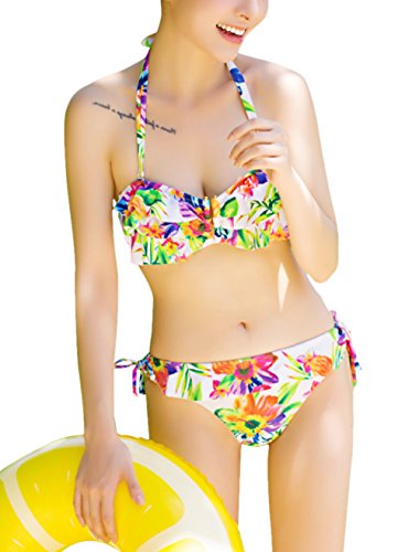 -. Title : (コタロン)COTARON 水着 レディース ビキニ セット 花柄 フリル ボタニカル柄 ビタミンカラー V字ビキニ 海