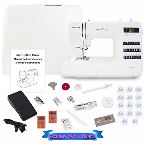 -. Feature : Exclusive Bonus Bundle: 10 Pack Bobbins, Needle Assortment Pack, 2 Packs Janome Red Tip Needles (Size 14), 1/4" Seam Foot / If you are an enthusiast looking for a long term hobby in sewing or if you have outgrown your mechanical sewing machine, the Necchi NE30 computerized sewing machine is the perfect step. / With 30 built-in stitches and easy to read digital display, you'll be sewing like a professional in no time. / By the needle, you'll find several great convenience buttons for easy sewing including a Start/Stop button to sew without a foot control, easy reverse button, locking stitch button and needle up/down button. / Get sewing fantastic projects right out of the box with the Necchi NE30 computerized sewing machine!