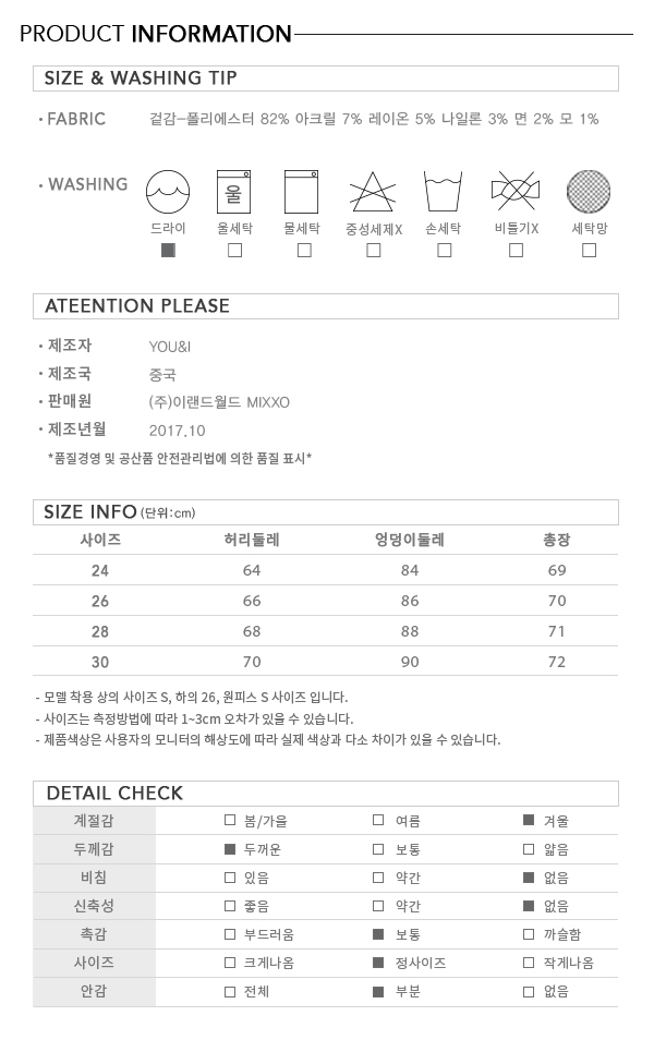 - 미디 기장으로 여성스러움은 물론 랩 디자인으로 포인트를 더한 체크 스커트입니다.