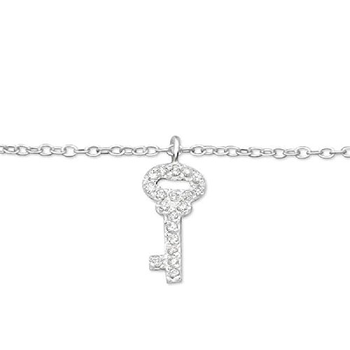 -. Title : So Chic Jewels - 925 Sterling Silver Key Anklet with Cubic zirconia