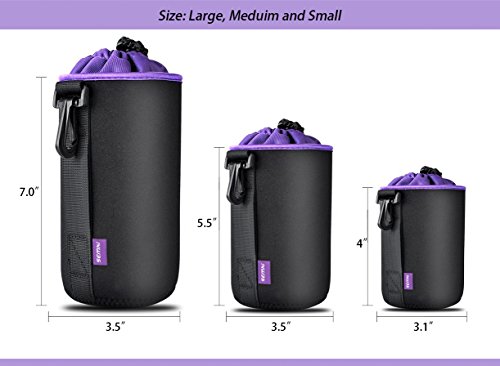 -. Title : Lens pouch bag Case-(3 pack)SEMKI Lens Protection and Carrying Neoprene Pouch bags Case of Soft Plush Lining for DSLR Camera Lens(Canon, Nikon, Sony, Tamron, Pentax, etc) …