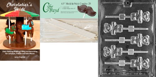 Cybrtrayd 45St25Bk-A031 'Teddy Bear Lolly' Animal Chocolate Candy Mold with 25 4.5-Inch Lollipop Sticks and Chocolatier's Guide