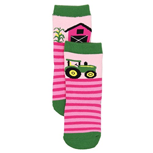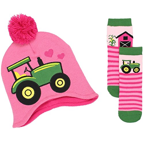 Binding : Apparel Product Description Keep warm on those cold days with this John Deere girls knit beanie hat and crew sock set that is constructed to the same quality standards employed by John Deere since 1837. These classic John Deere hats and socks feature John Deere tractor and farm graphics for added detail and style. The Knit Tractor Magenta set contains a knit beanie that is lined in soft micro-fleece, and has a pom pom on the top! The Tractor Pink set contains a knit beanie that is lined in a soft micro-fleece, includes an embroidered appliques of a tractor and hearts, and has a pom pom on the top! It's the perfect cold weather accessory set for any fan of John Deere! Choose your favorite style or collect them all! 0