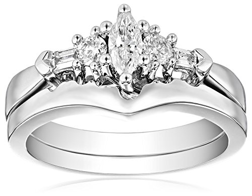 10k White Gold Center Stone Diamond Bridal Ring, (1/2 cttw), Size 8