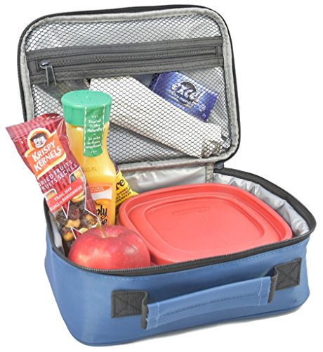 SIZE 9.8”W x 7.1”L x 3.3”H is ideal for kids’ appetites. Holds a sandwich-size container, dipping container, drink box, utensils and condiments.