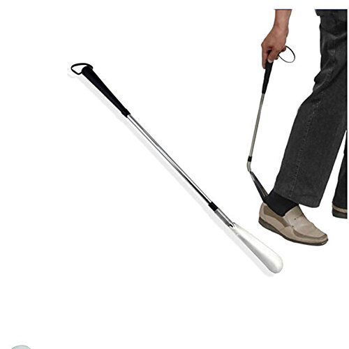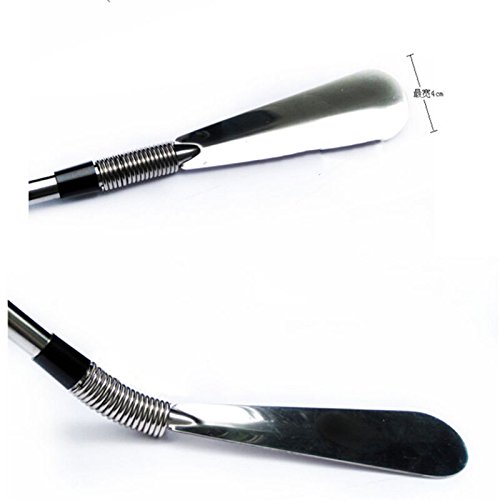 Product Description Brand new and high quality Plastic hanging strap for convenience Metal shaft with spring mounted horn Highly functional, flexible, long-handled shoe horn It permits putting on shoes without bending down A high-performance spring between the shaft and the shoe horn part provides the necessary flexibility that is needed to let the foot slip easily into the shoe from any angle Material:Plastic handle and Stainless Steel stick Length: Approx 16-31 inch 0