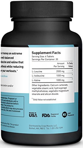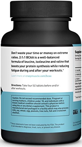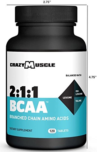 -. Title : BCAA Capsules by Crazy Muscle: 3,000mg, Perfect 2:1:1 Ratio of Branched Chain Amino Acid Pills - 120 Tablets