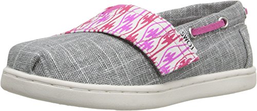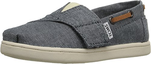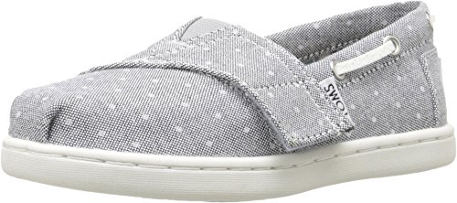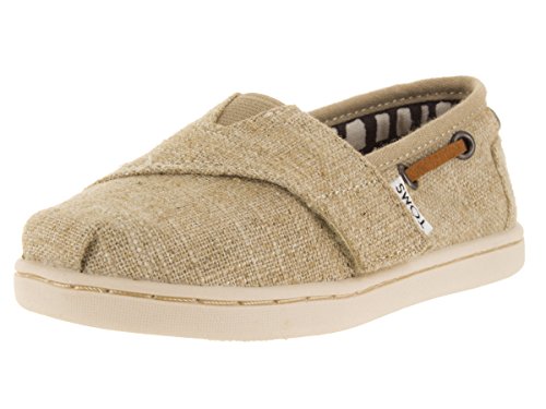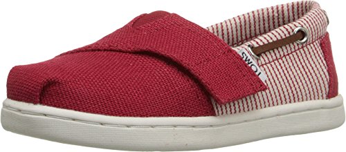 Upper comes in chambray or burlap. (Materials stated in color name.) Features nautically inspired drawstrings along collar. Features classic toe stitch detailing. Elastic V-panel with hook-and-loop closure for easy on and off. Breathable textile lining. Suede leather footbed provides light cushioning. Latex arch insert for added support. Flexible, one-piece, mixed-rubber outsole. Imported.