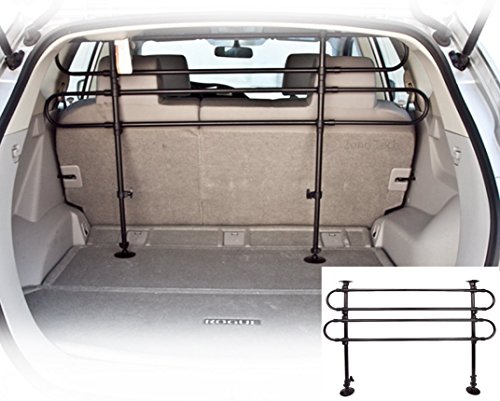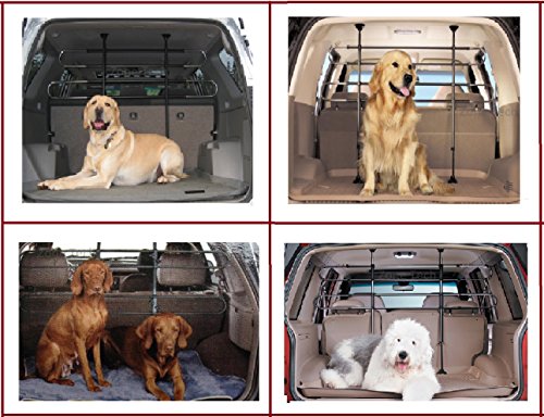 Highland Black Universal Pet Barrier safely keeps pet in the cargo area of the vehicle, away from the driver and passengers. It has non-marring brace pads which won't harm the vehicle interior, the sleek and modern styling avoids the "cagey" look. This barrier is made of durable heavy gauge tubing adjusts to 45 inch in height, and 65 inch in width making it perfect for most vehicles to installs in minutes without any drilling.Feature