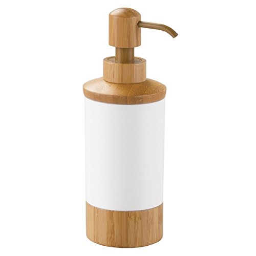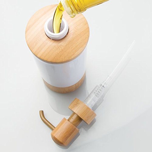 DURABLE AND REUSEABLE: Made of durable white plastic with a natural bamboo base and pump head