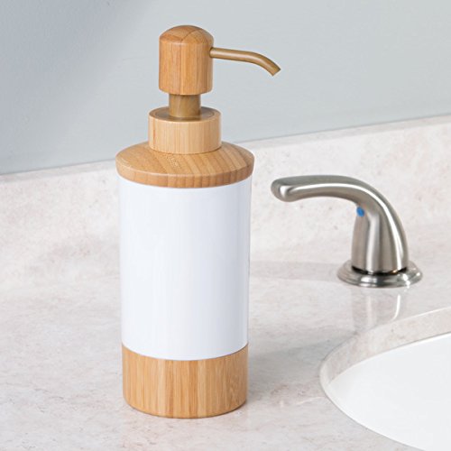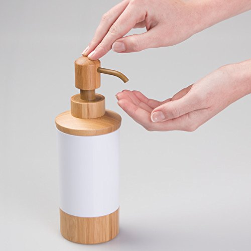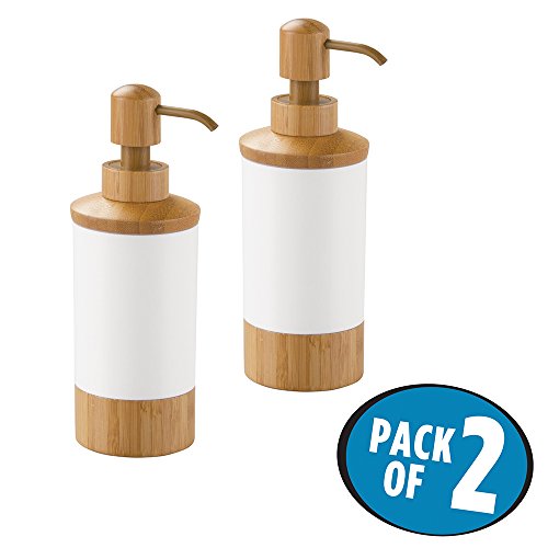 mDesign Liquid Hand Soap Dispenser Pump Bottle for Kitchen, Bathroom | Also Can be Used for Hand Lotion & Essential Oils - Pack of 2, White/Natural Bamboo