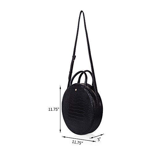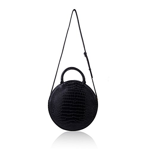 Cricle bag in Croc PVC with faux suede inner. Bag with top zip and cross body strap.