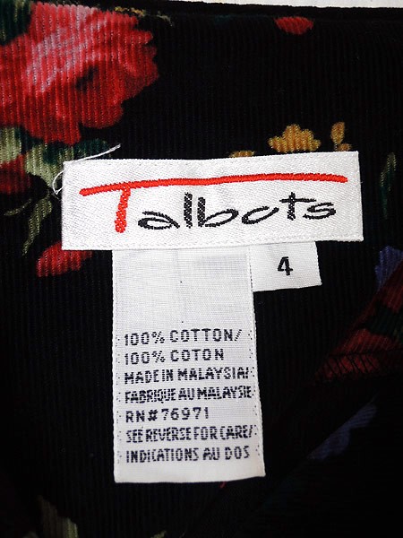 Ladies ブランドタルボット Talbots カラー黒ベース メール便不可 コンディション★★★ 素材コーデュロイ・ベロア 表記サイズ4 スタッフコメント一番上のボタン、変えて有ります。 実寸サイズ 着丈 121 cm 身幅 45 cm 肩幅 40 cm 袖丈 58 cm ウエスト 82 cm ※ウエスト・ヒップ以外は平置き採寸【code】#c