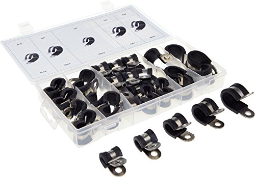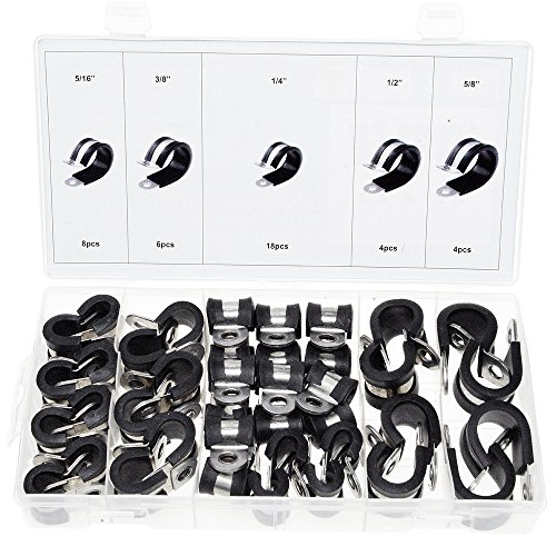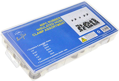 Swordfish 32490 - 40pcs Rubber Insulated Stainless Steel Hose Clamp Assortment with 1/4" Mounting Holes, Size: 1/4" to 5/8"