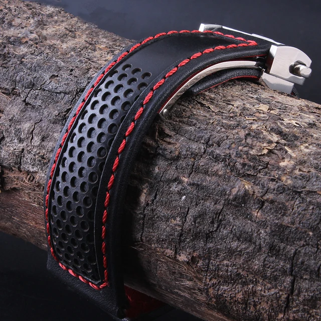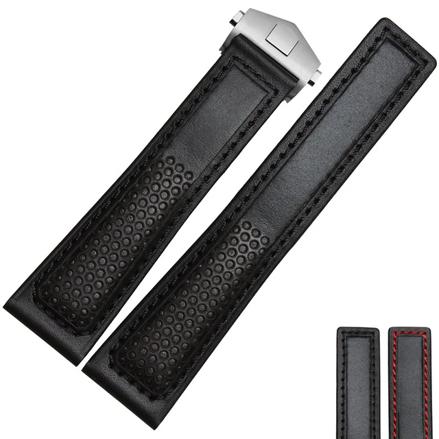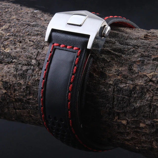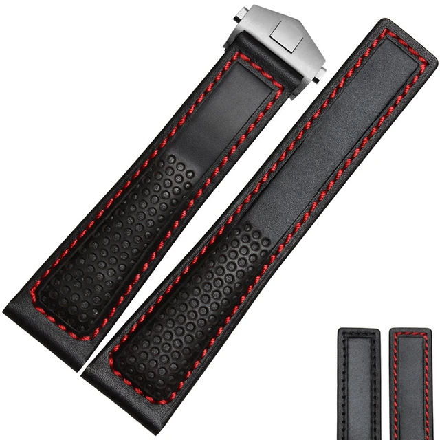 | [해외] TJP 22 미리메터 정품 가죽 시계 스트랩 블랙 레드 블랙 스티치 시계 줄 교체 태그 카레라 모나코 Heuer 단어 |