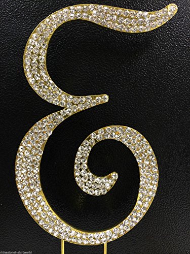 Crystal Rhinestone Covered Gold Monogram Wedding Cake Topper Letter E