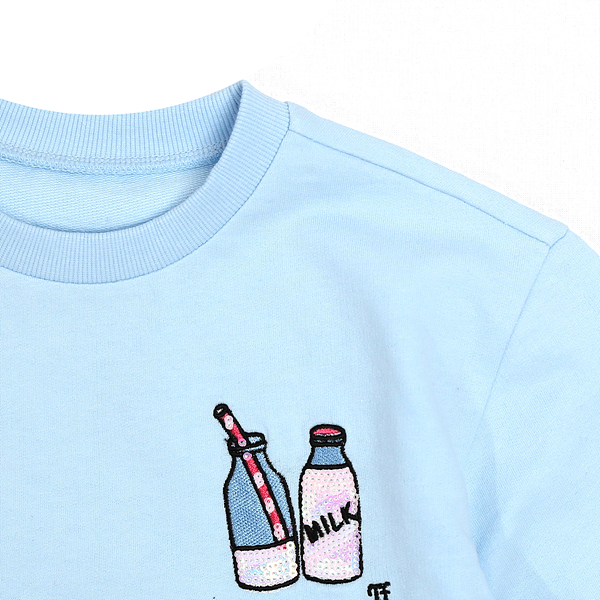 소재-겉감 : 면 100 배색 : 면 95 폴리우레탄 5 색상-블루 사이즈-110,120,130,145,155,165상세설명-봄 계절에 맞는 화사한 소라컬러의 맨투맨 입니다. 드롭된 숄더에 소매셔링으로 볼륨감을 주어 귀여운 이미지를