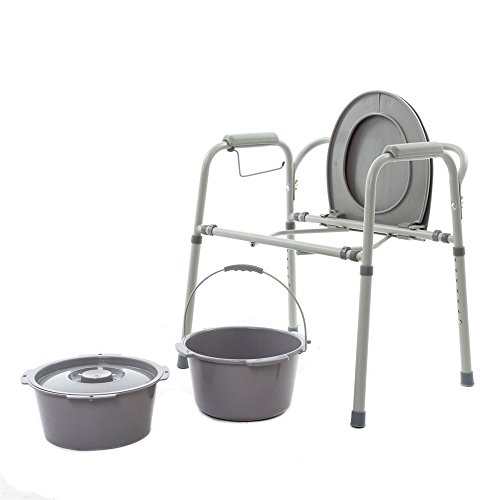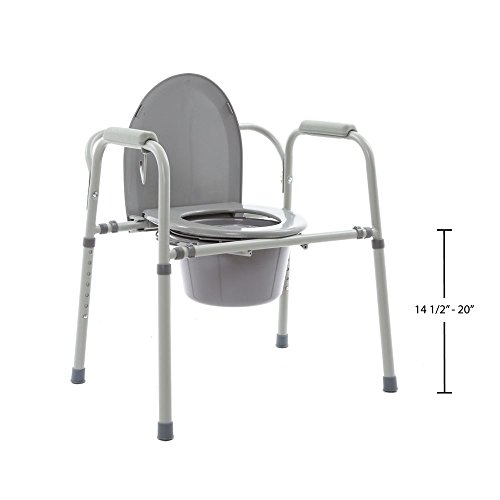Studio : Discount Ramps Publisher : Discount Ramps Binding : Health and Beauty Product Description Ideal for those who aren't able to get to the bathroom, this portable commode is easy to set up and includes the seat, cover, short splash guard, pail and lid. Adjustable in 1" increments, the seat height can be set anywhere from 14.5"-20.5". For the ultimate in comfort and convenience, this commode includes two padded arm rests for additional support when sitting and standing, and it can be folded for easy storage or transportation. 0