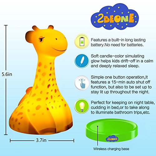 Battery free The nightlight features wireless charging design with a built-in long lasting battery, no extra batteries or sockets are required, simply recharge the night light by placing it onto its wireless charging base. It features a 15-min auto shut off function, but also to be set up to stay lit up throughout the night.