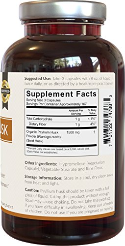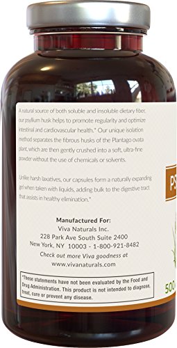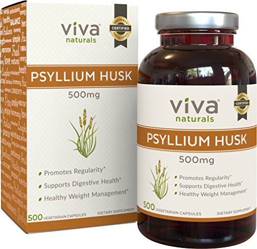Viva Naturals Organic Psyllium Husk, 500mg, 500 Vegetarian Capsules - The BEST Fiber Supplement for Optimal Intestinal Health