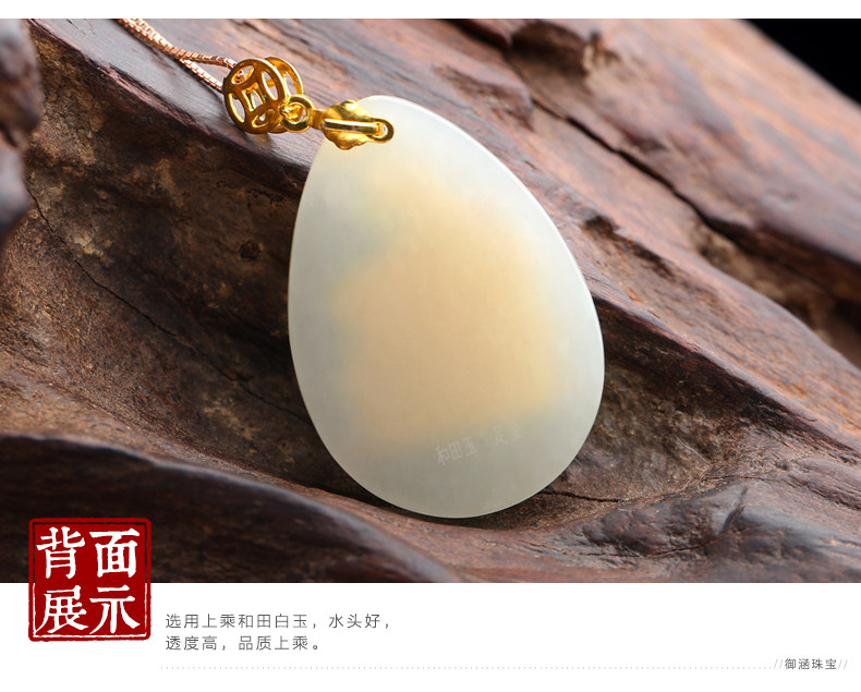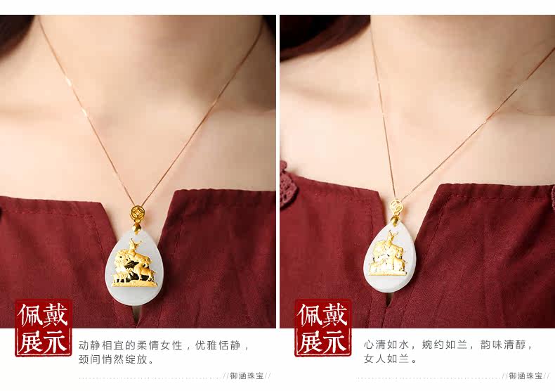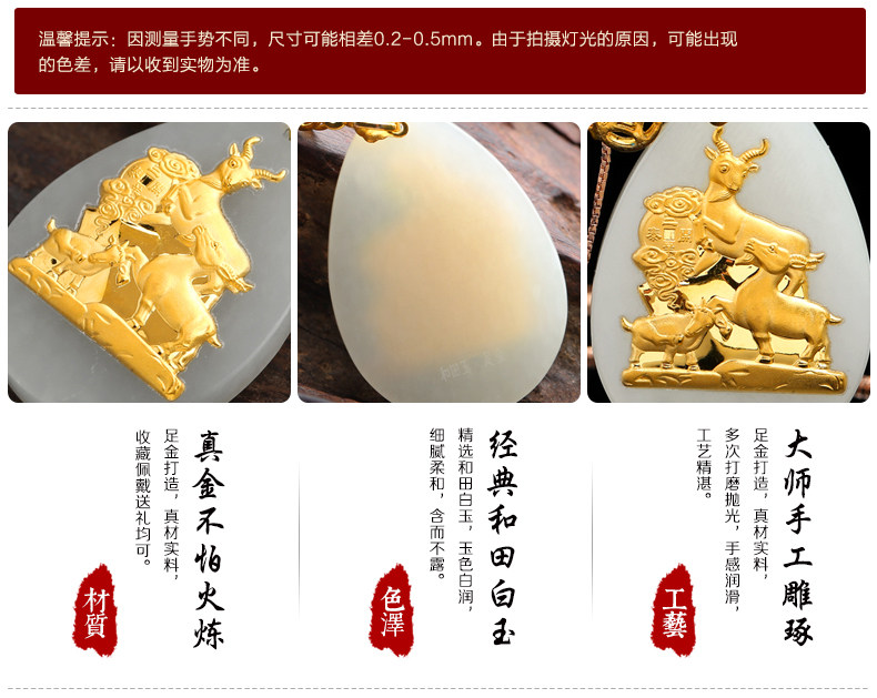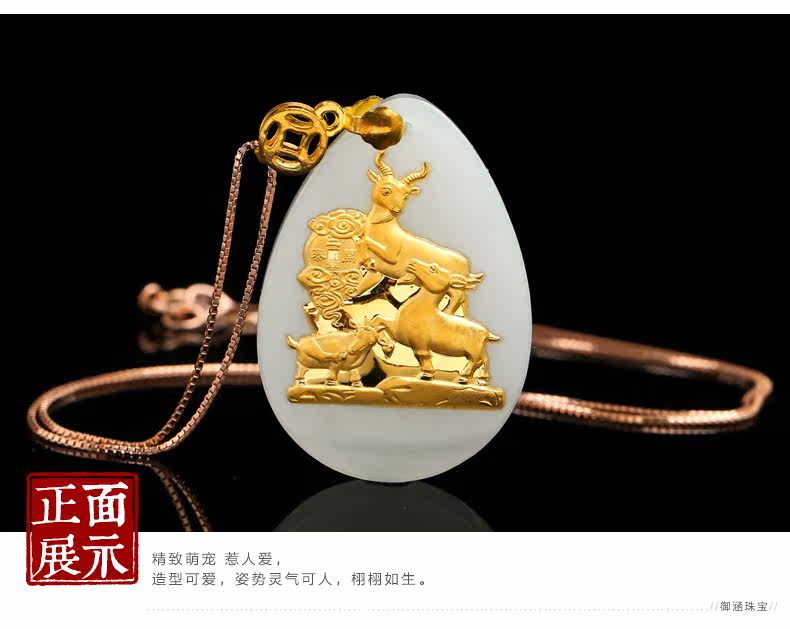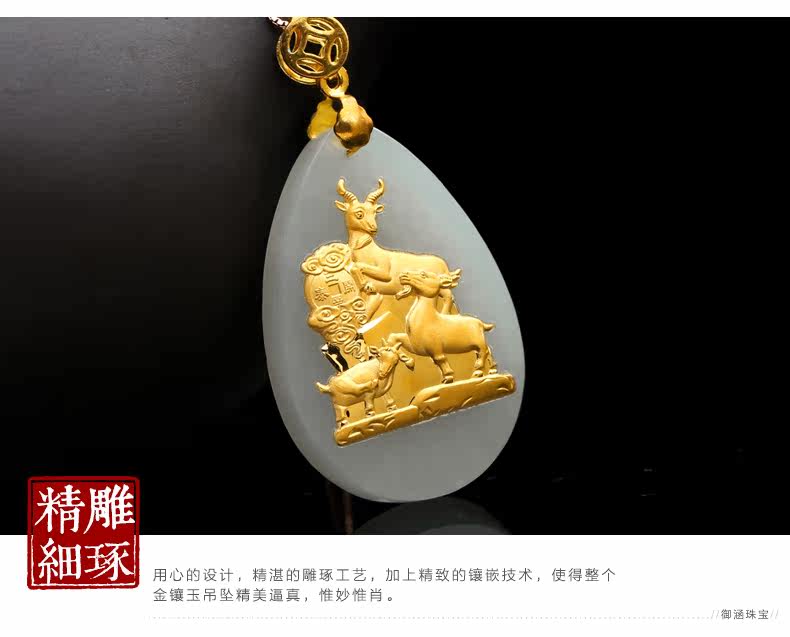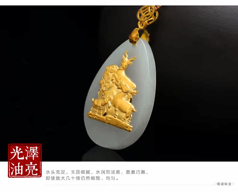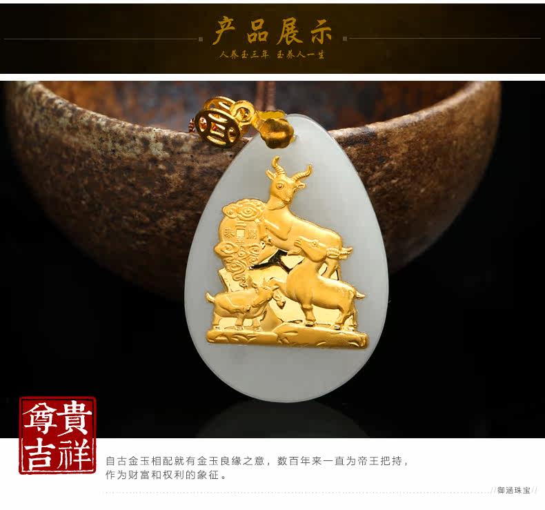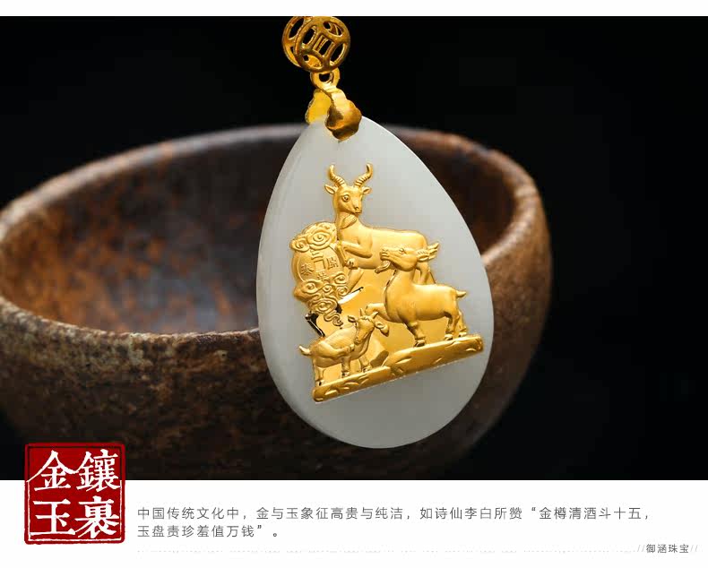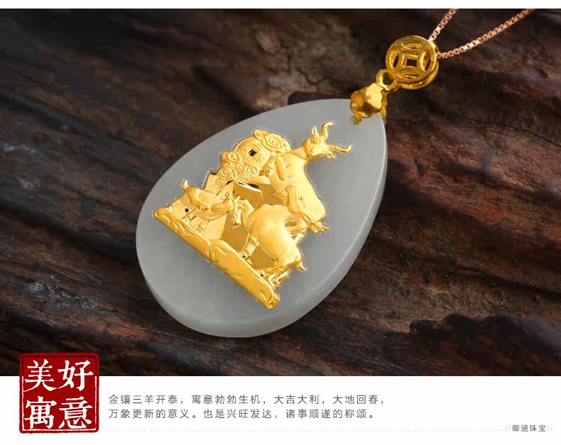 和田玉白玉金镶玉吊坠 三羊开泰玉佩男女款天然玉石项链挂件