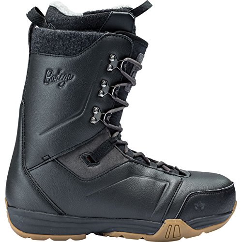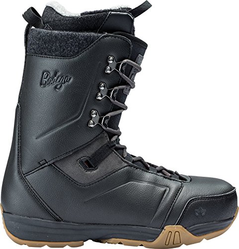Studio : Rome Snowboards Publisher : Rome Snowboards Binding : Sports Product Description The Rome Men's Bodega Snowboard Boot is built for riders who want a feel that's as easy-going as the attitude inside your neighborhood corner store. It offers a smooth flex for getting loose on rails, tweaking grabs, and surfing through powder. The heat-moldable liner ensures a comfy custom fit, and the SkateCuff 3D cuff keeps your heel locked down for improved response and less fatigue from heel lift. A Rad F. I. T. FoamBed offers support when you're stomping cliff drops, and the Aegis Microbe Shield keeps funk at bay after all-day laps through the park. EVA keeps the sole lightweight and improves cushioning, and it's supplemented with a thin rubber layer to boost durability and traction. 0