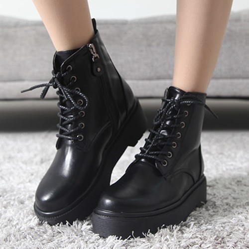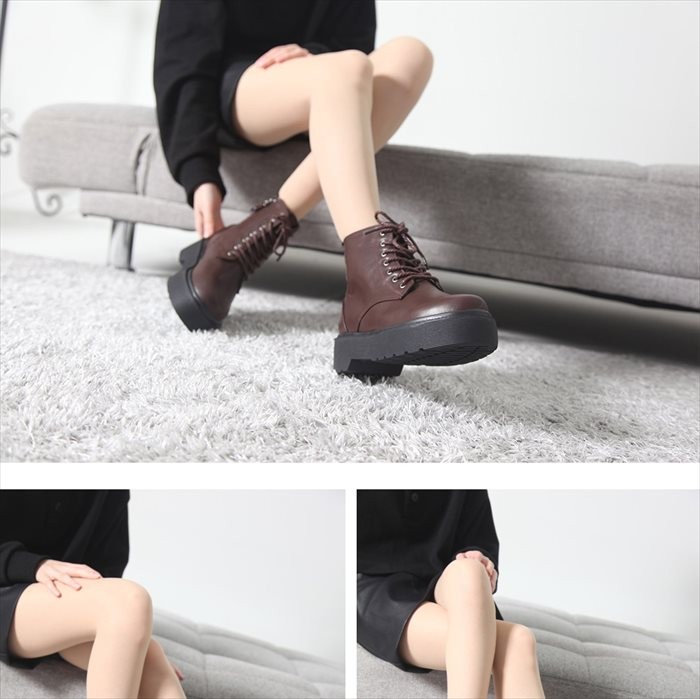 商品名:ショートブーツ レディース 厚底 レースアップ 2017 秋冬 ファッション 靴 婦人靴