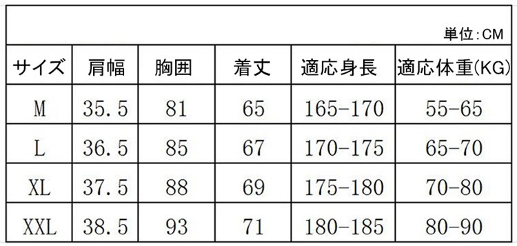 サイズ M L XL 2XL