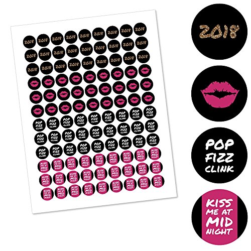 Pop, Fizz, Clink! - Party Round Candy Sticker 2018 New Year's Eve Favors - Labels Fit Hershey’s Kisses (1 sheet of 108)