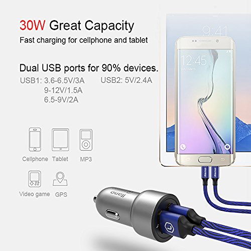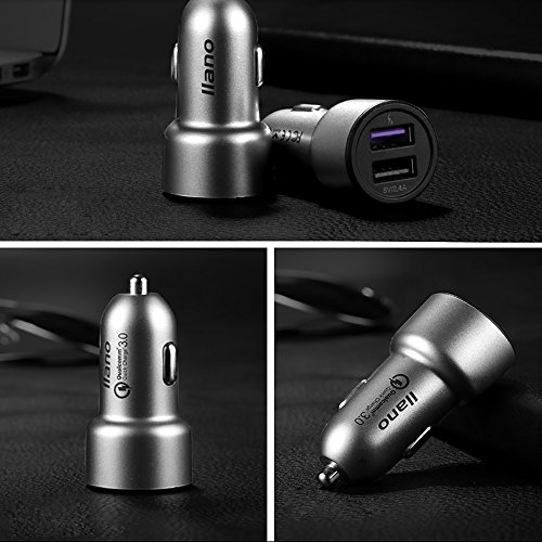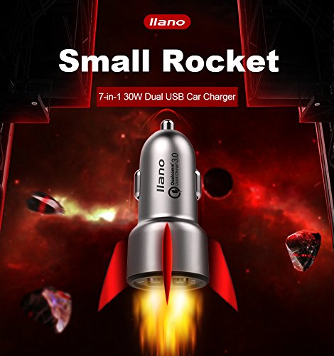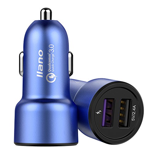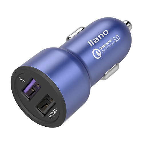 llano QC 3.0, 7-in-1 30W Dual Port USB Car Quick Charger, Fast Charging for Honor 8, Samsung S8, Moto Z, iPhone 7, iPad Air 2, Nexus 6, Xperia Z5 and More (Blue)