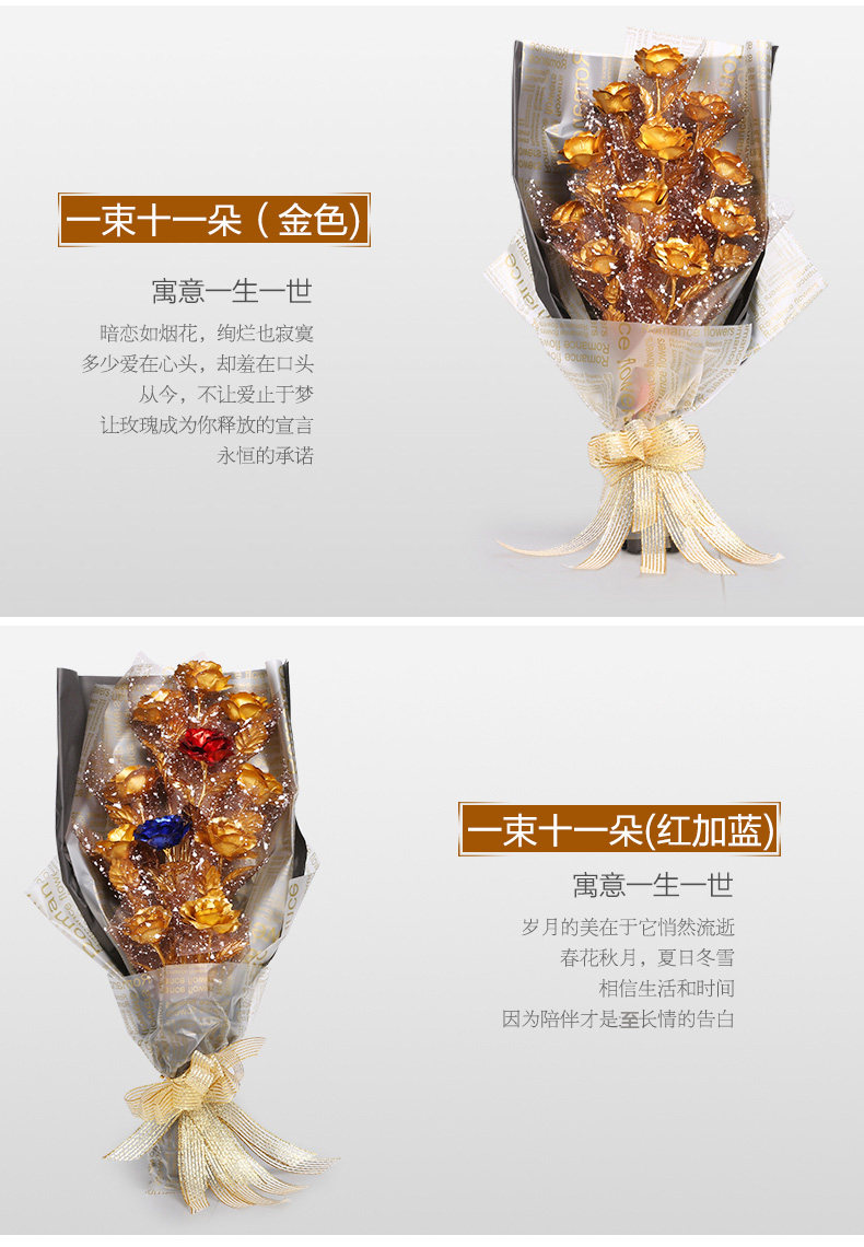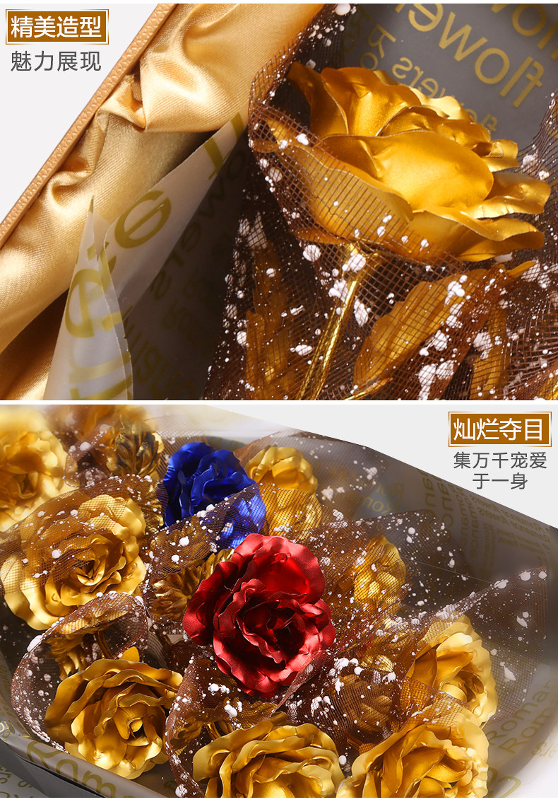 24k金箔玫瑰花金玫瑰 情人节礼物送女友老婆创意实用生日定制礼品
