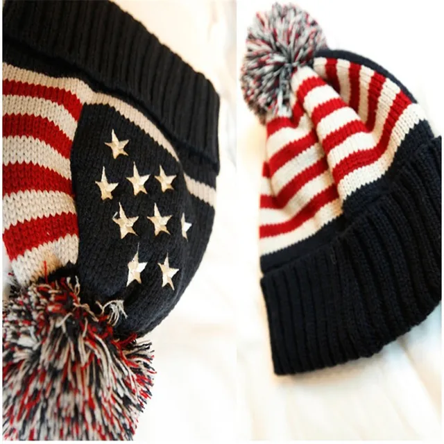 [해외]2016 새로운 가을 겨울 일 Skullies 뜨개질 울 겨울 남성 양 미국 국기 모자 머리 공 회피 M119