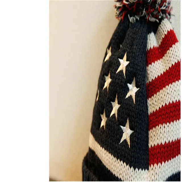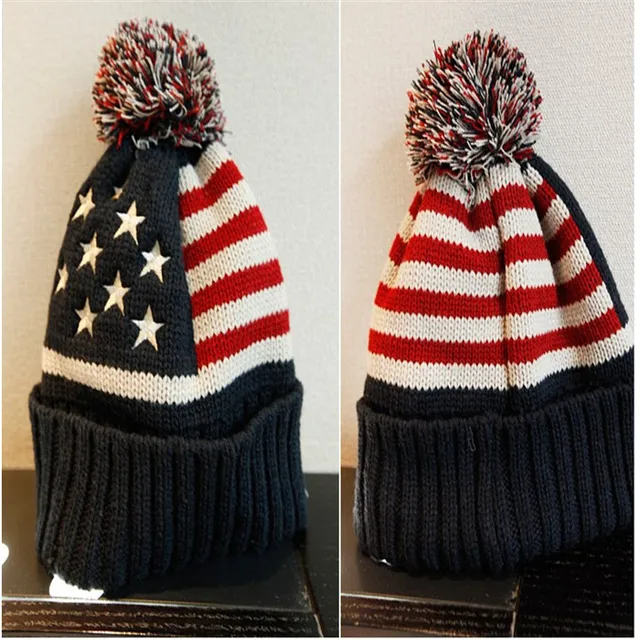 2016 새로운 가을 겨울 일 Skullies 뜨개질 울 겨울 남성 양 미국 국기 모자 머리 공 회피 M119